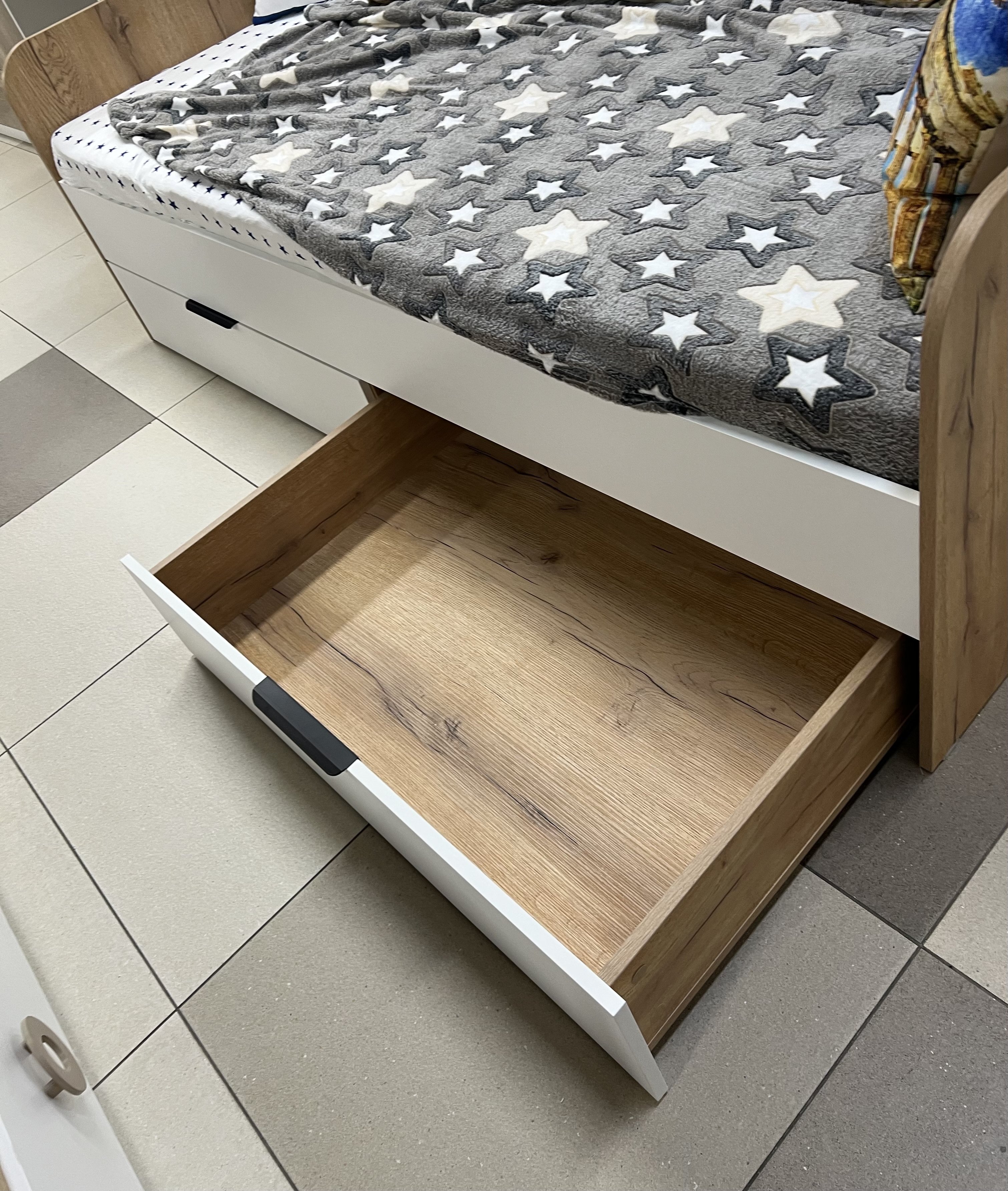 Торцы кровати закруглены и обработаны толстой ударопрочной кромкой ПВХ