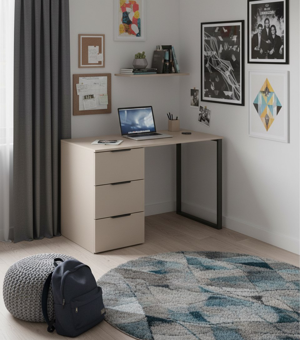 Стол письменный коллекции мебели Брайт Велюр организует удобную рабочую зону и упорядочит размещение школьных принадлежностей.