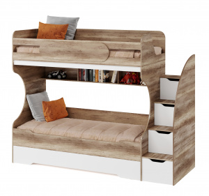 Кровать выполнена из сертифицированного, российского, качественного, экологически чистого ЛДСП в сочетании шикарного цвета дуб каньон с белым.