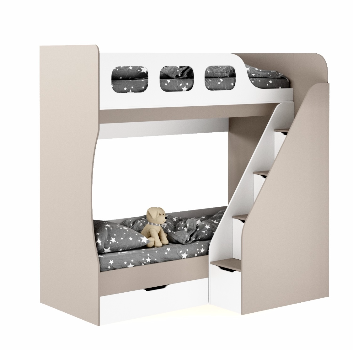 * В нижнюю кровать встроен выдвижной ящик для белья и игрушек.