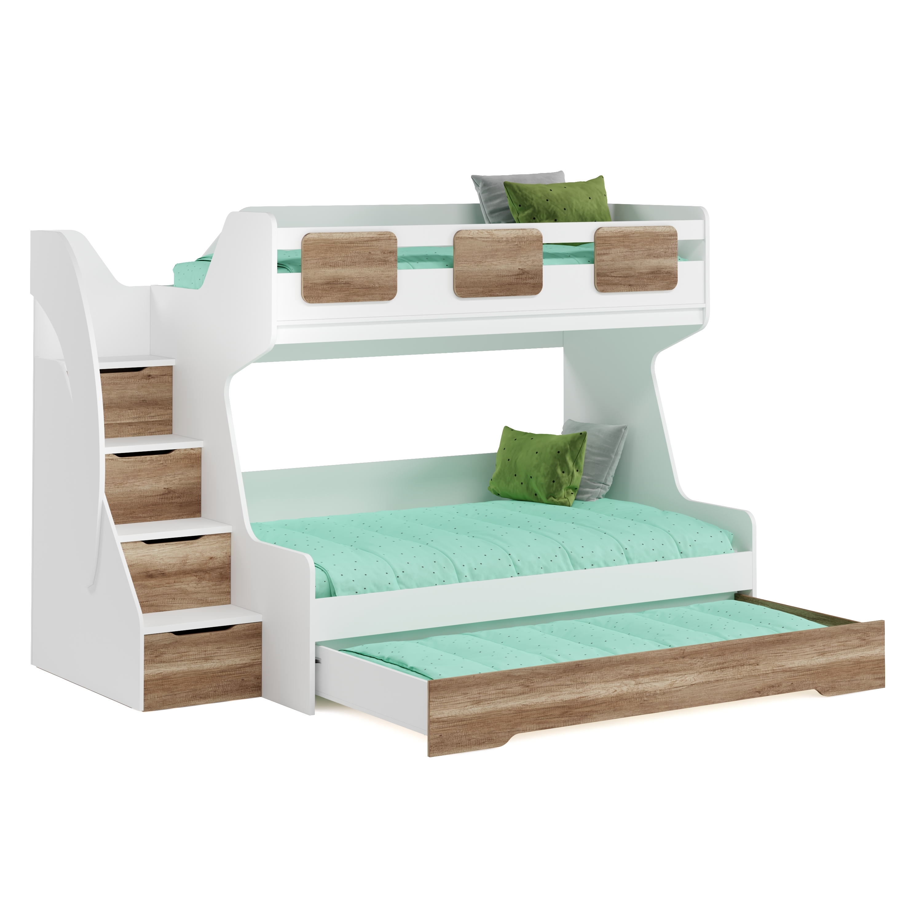 Увеличенное, просторное нижнее спальное место позволяет комфортно разместиться ребенку вместе со взрослым.