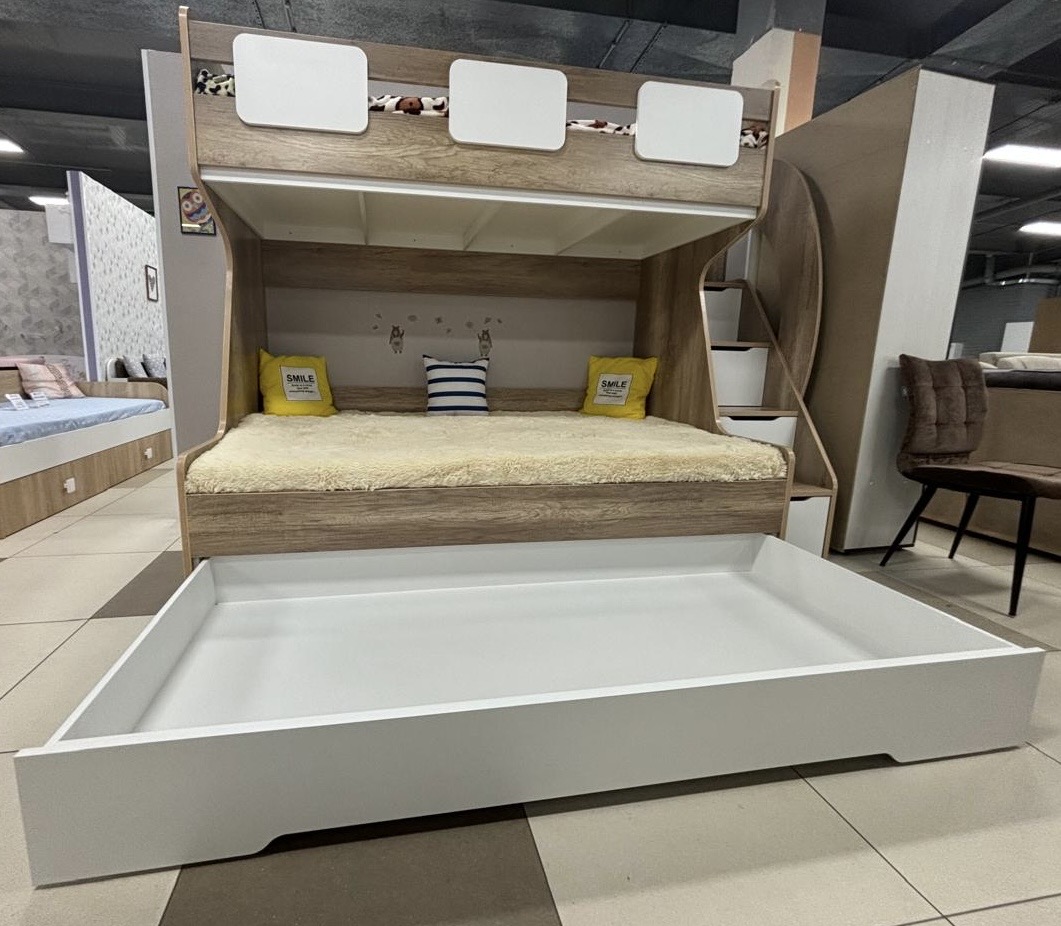 Увеличенное, просторное нижнее спальное место позволяет комфортно разместиться ребенку вместе со взрослым.