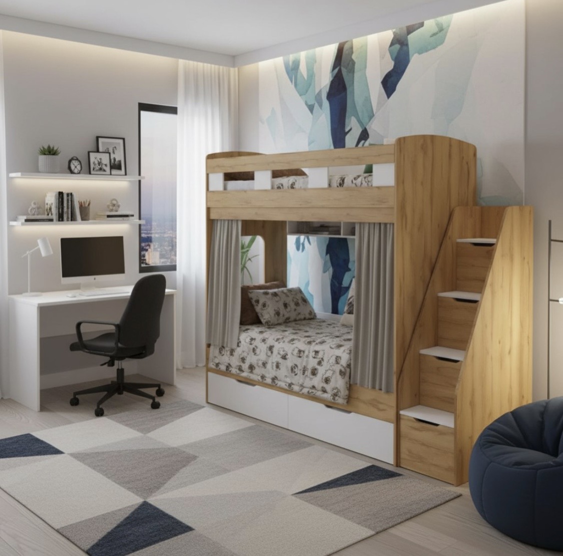 Вместо них - цельный и прочный настил из ЛДСП, который выдерживает сверхвысокую нагрузку и позволяет расположиться даже взрослому с ребенком.