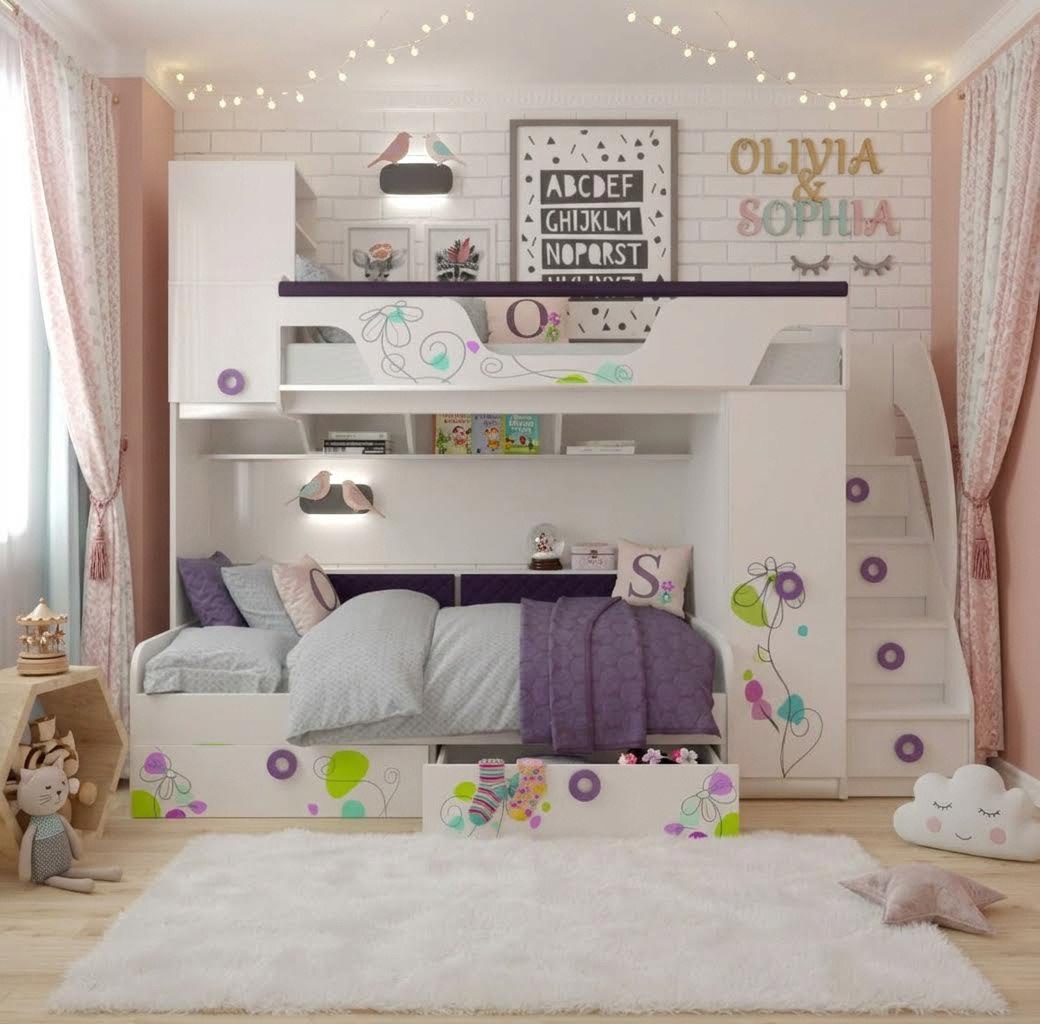 Нижняя кровать имеет два вместительных выдвижных ящика.