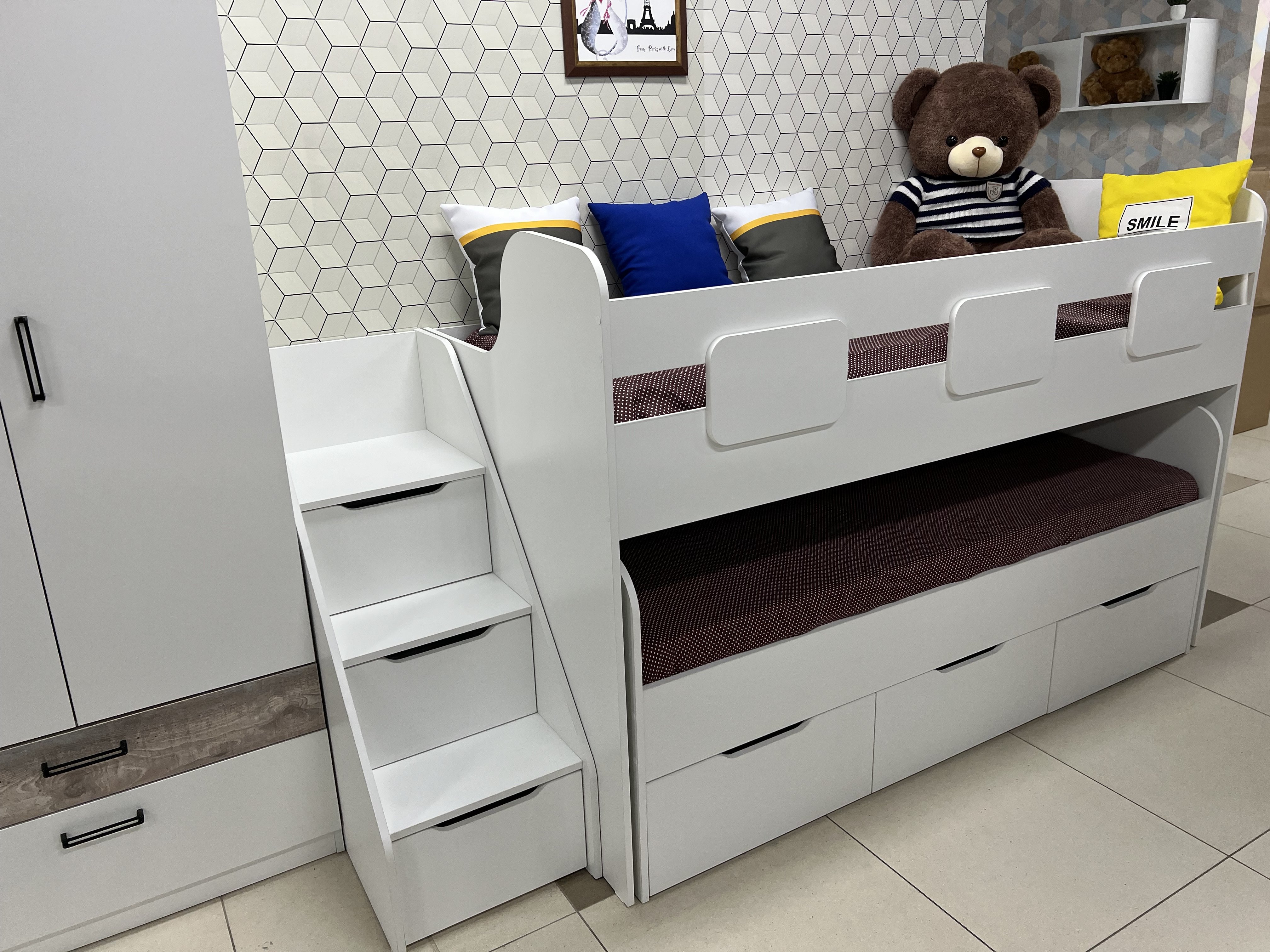 Если в комнате мало места, на помощь приходит двухъярусная кровать.