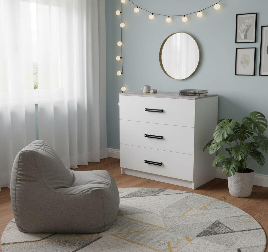 Мебель выполнена из качественного, экологически чистого ЛДСП класса Е0,5 в сочетании цветов бетон пайн + белый.