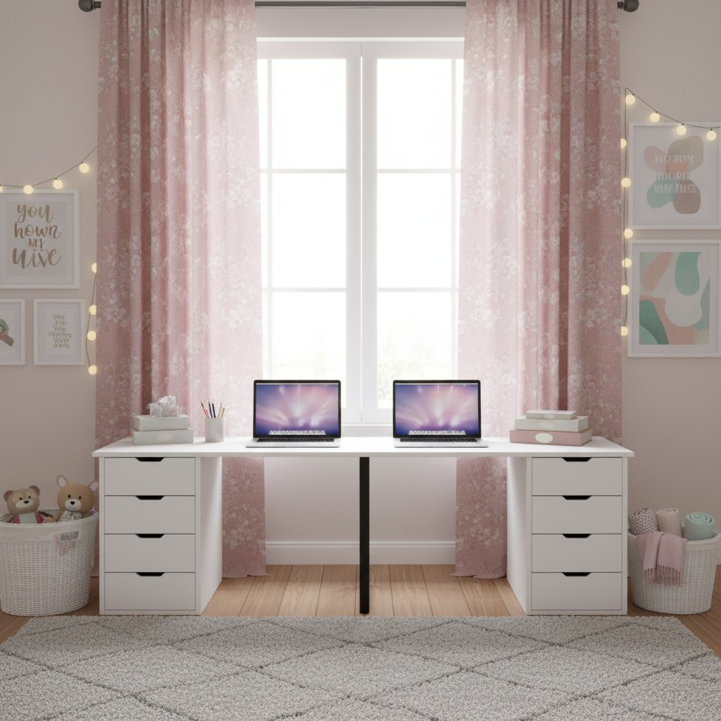 Стол для двоих детей - отличное решение для небольших комнат.