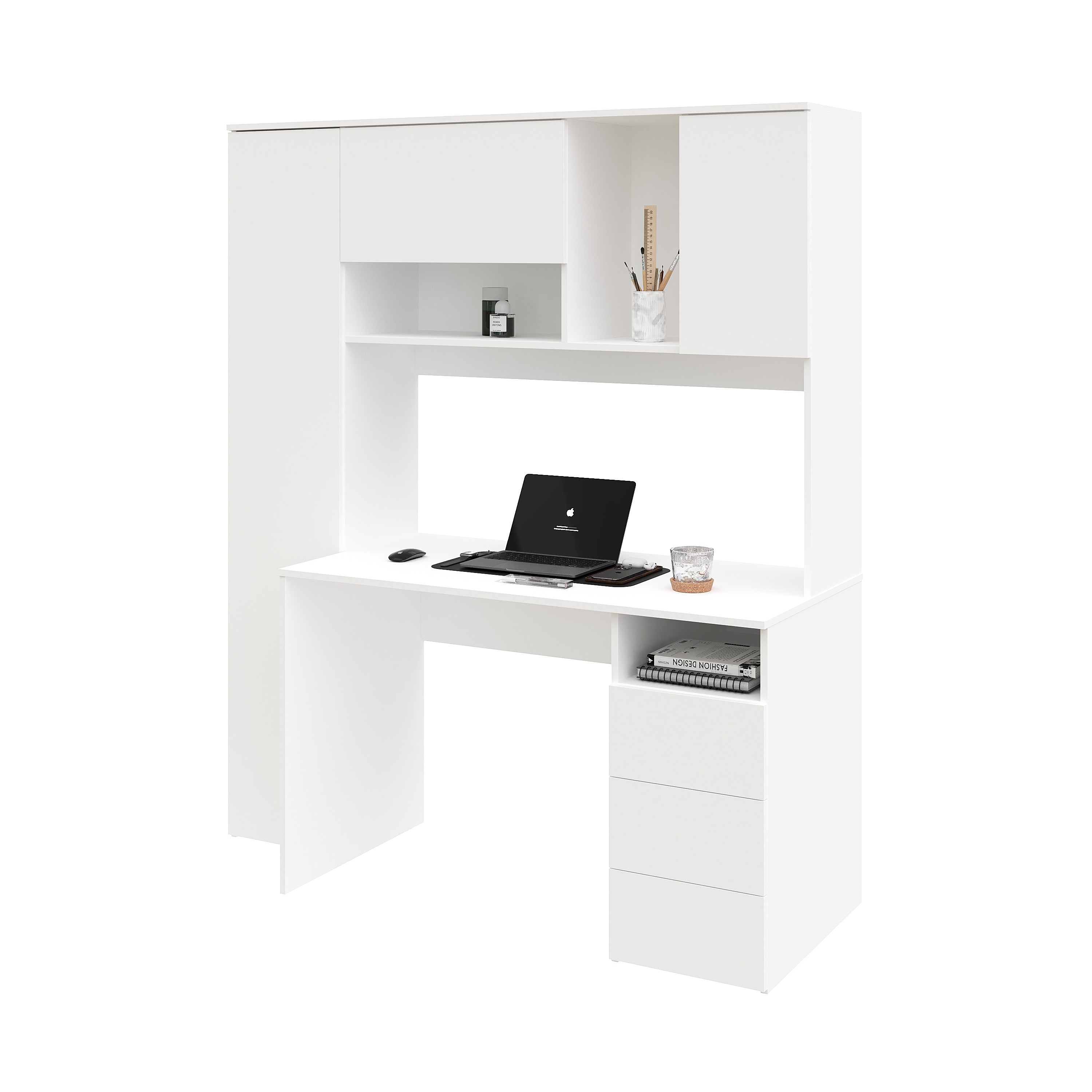 Просторная поверхность, удобные полки и ящики позволят разместить учебники, книги и канцелярию.
