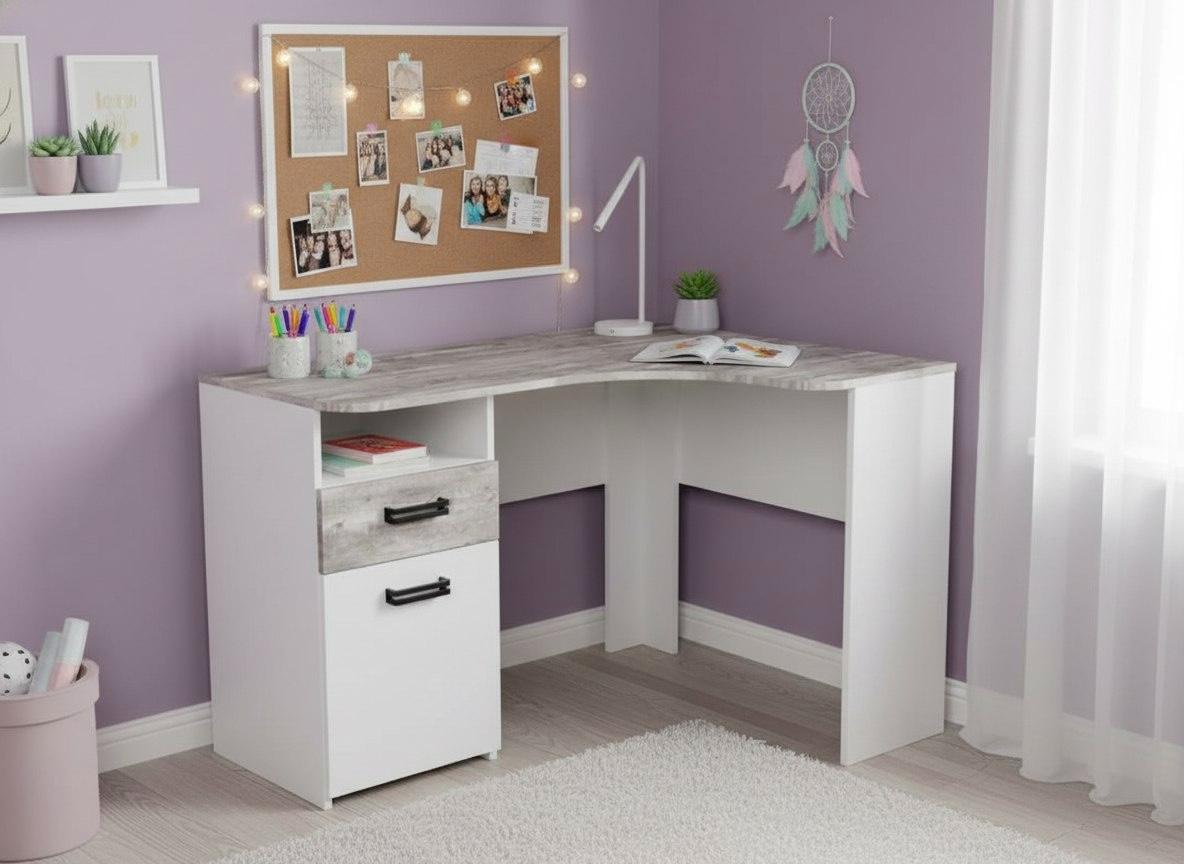 Мебель выполнена из сертифицированного, качественного, экологически чистого ЛДСП класса Е0,5 в сочетании цветов "бетон пайн" + белый.
