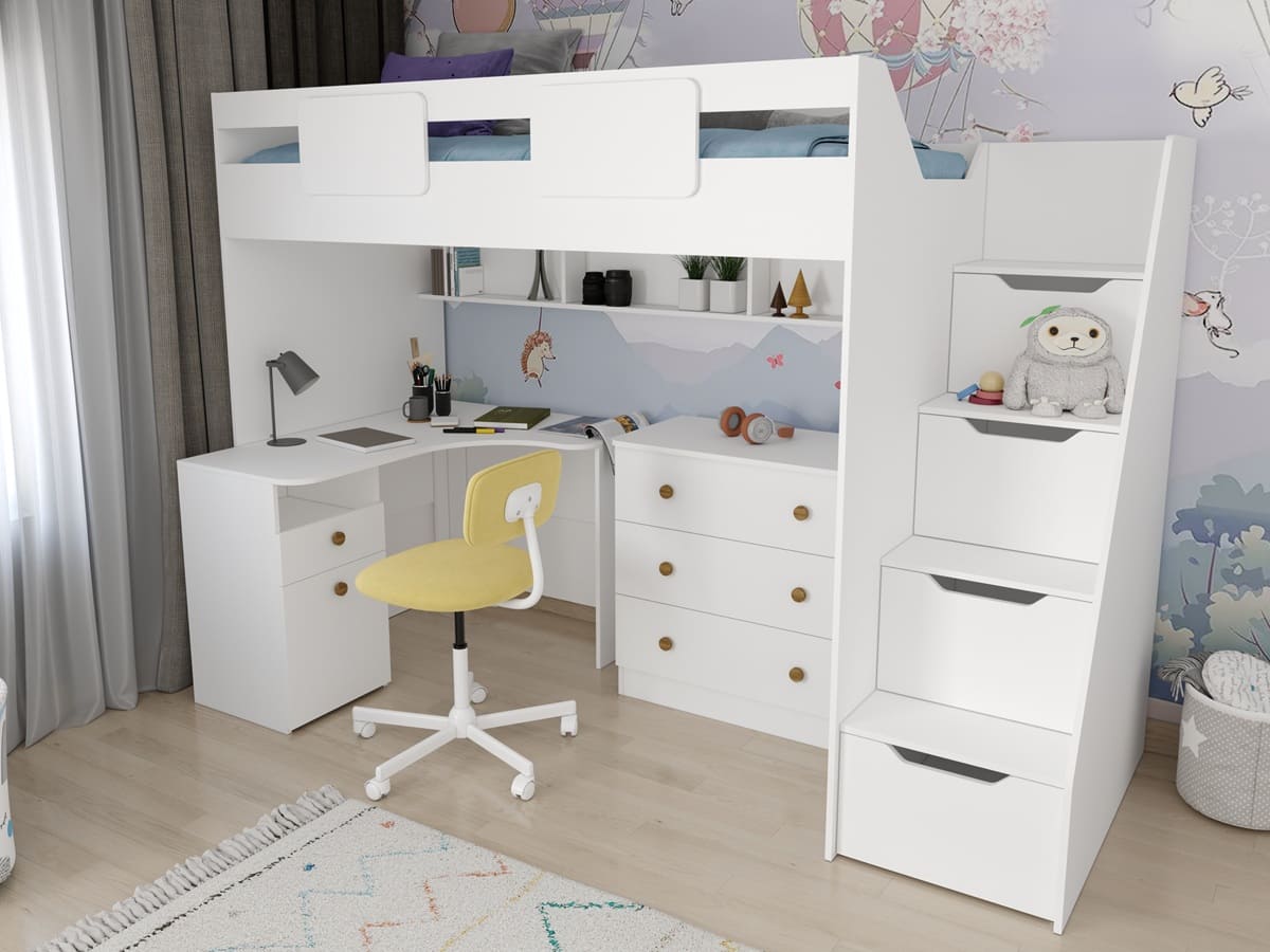 кровать-чердак Мозаика-2 + стол угловой Умка New + комод Умка New