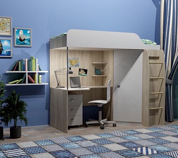 Основание кровати – прочный настил ЛДСП, который позволяет ребенку спать на ровной поверхности, что важно для детской спины. Прочное основание не скрипит и не сломается при играх. Отлично подходит как для пружинных, так и беспружинных матрасов.