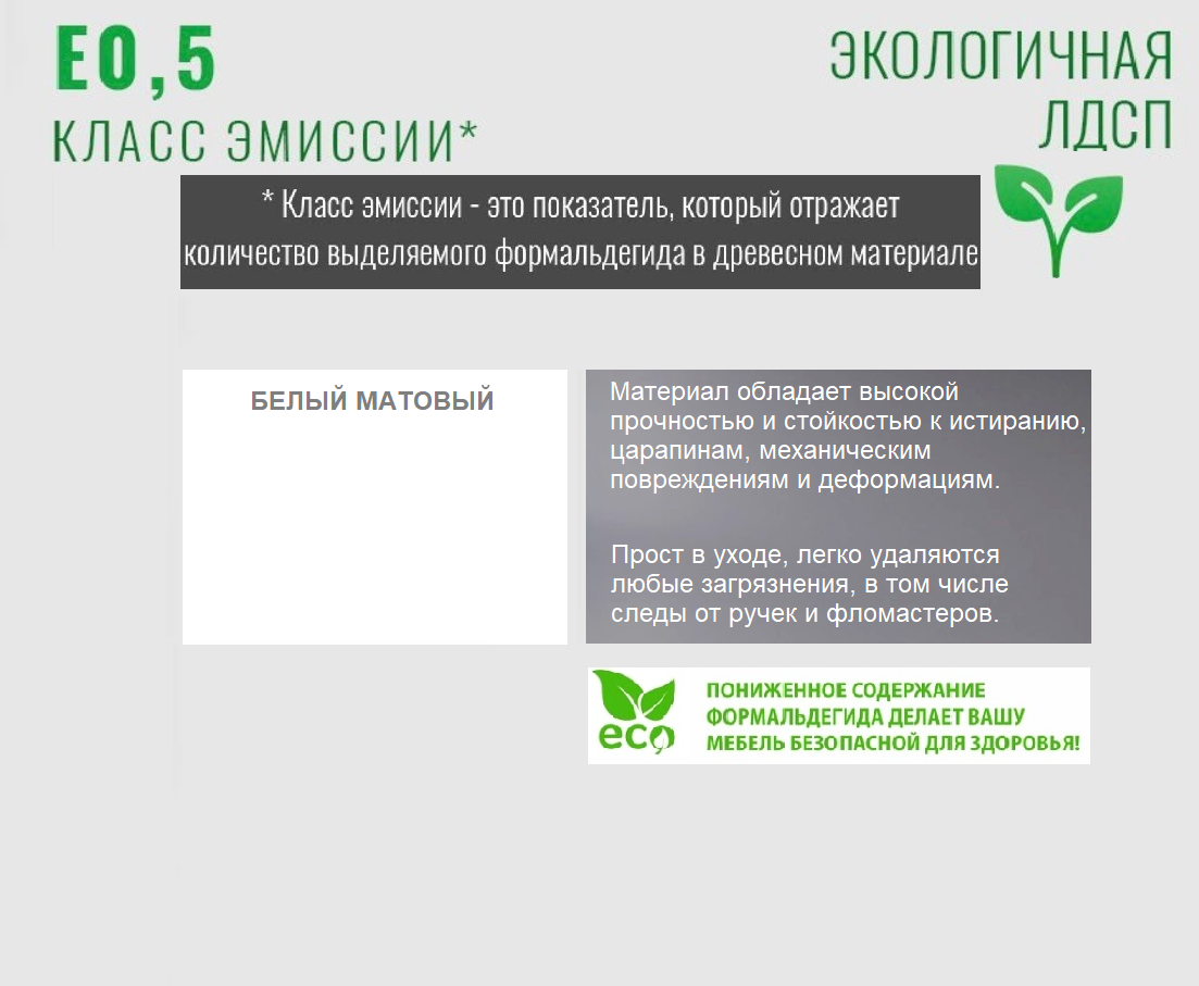 Материал: сертифицированное, качественное, экологически чистое ЛДСП Е0,5 в белом цвете.