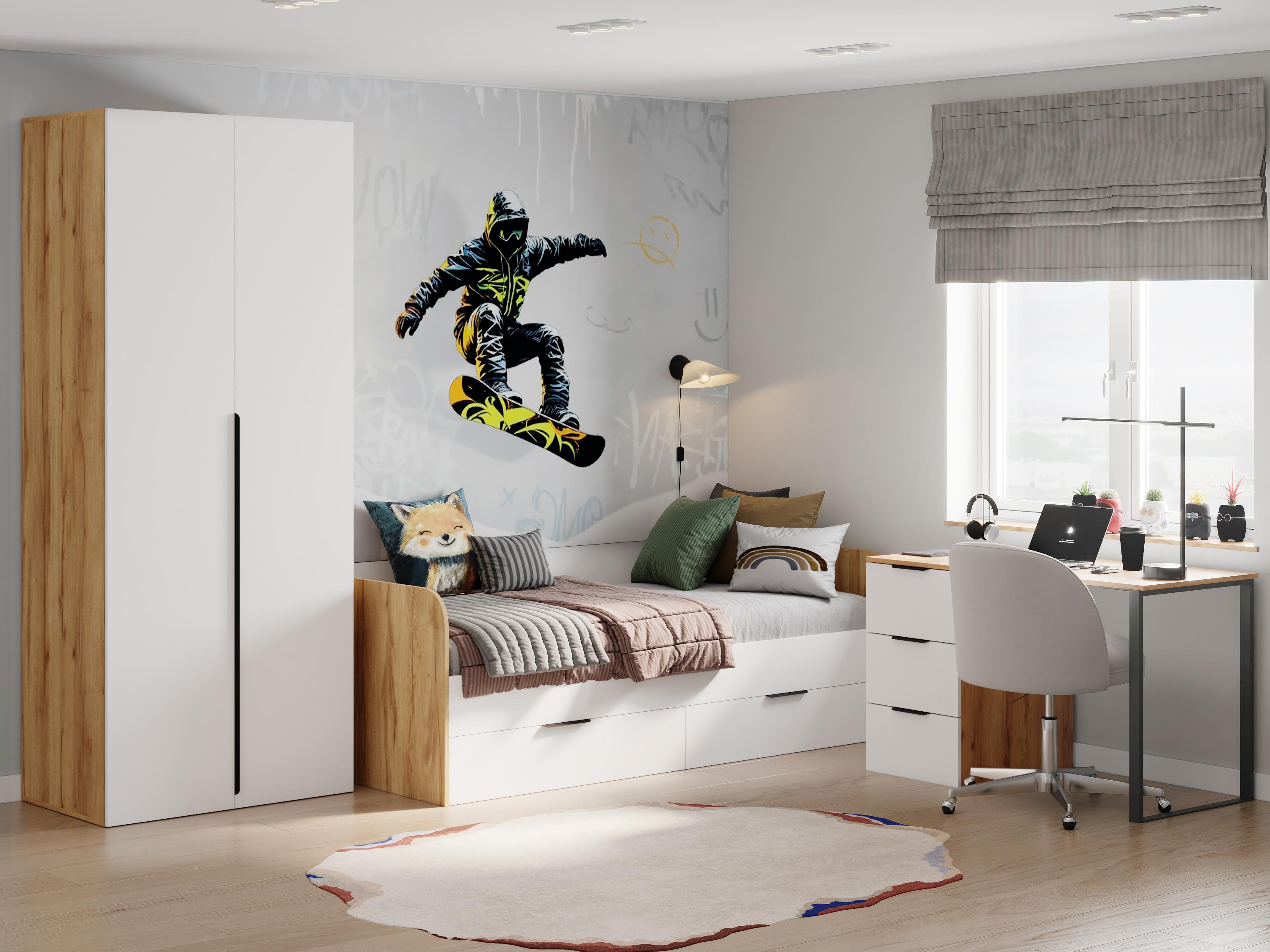 В состав комплекта входят: кровать + стол + шкаф