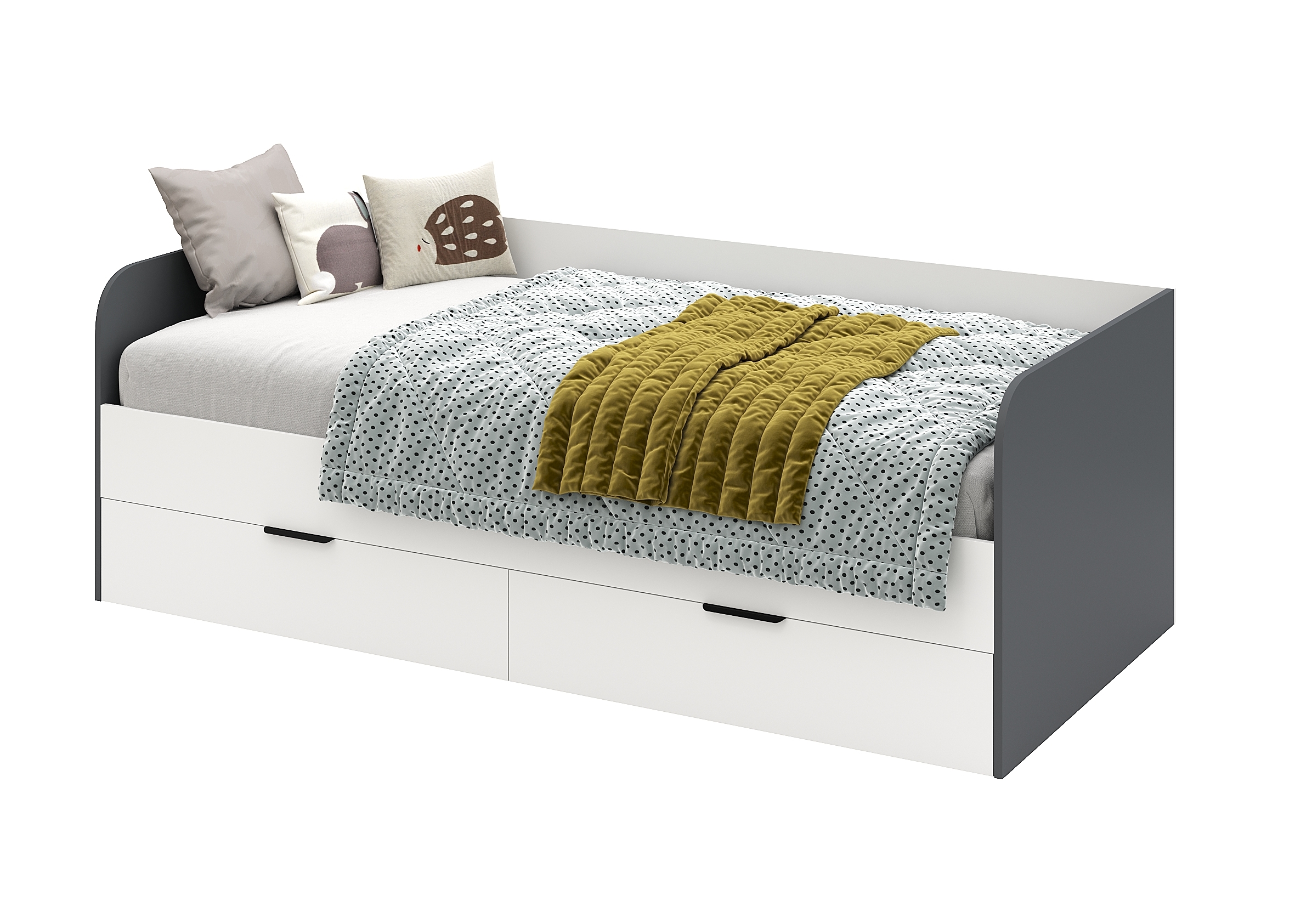 Высокая нагрузка на спальное место. Доводчики, направляющие скрытого монтажа. Прочные ящики |