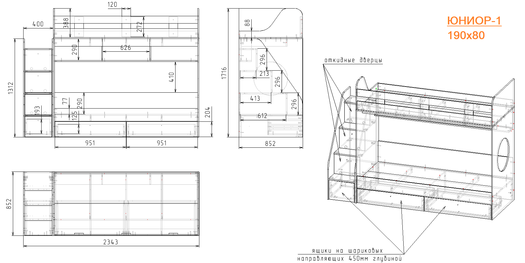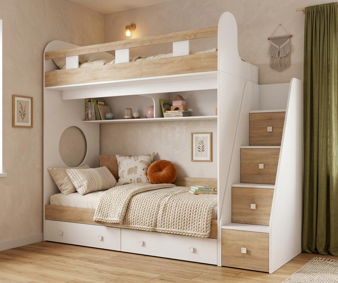 Вместо них - цельный и прочный настил из ЛДСП, который выдерживает сверхвысокую нагрузку и позволяет расположиться даже взрослому с ребенком.