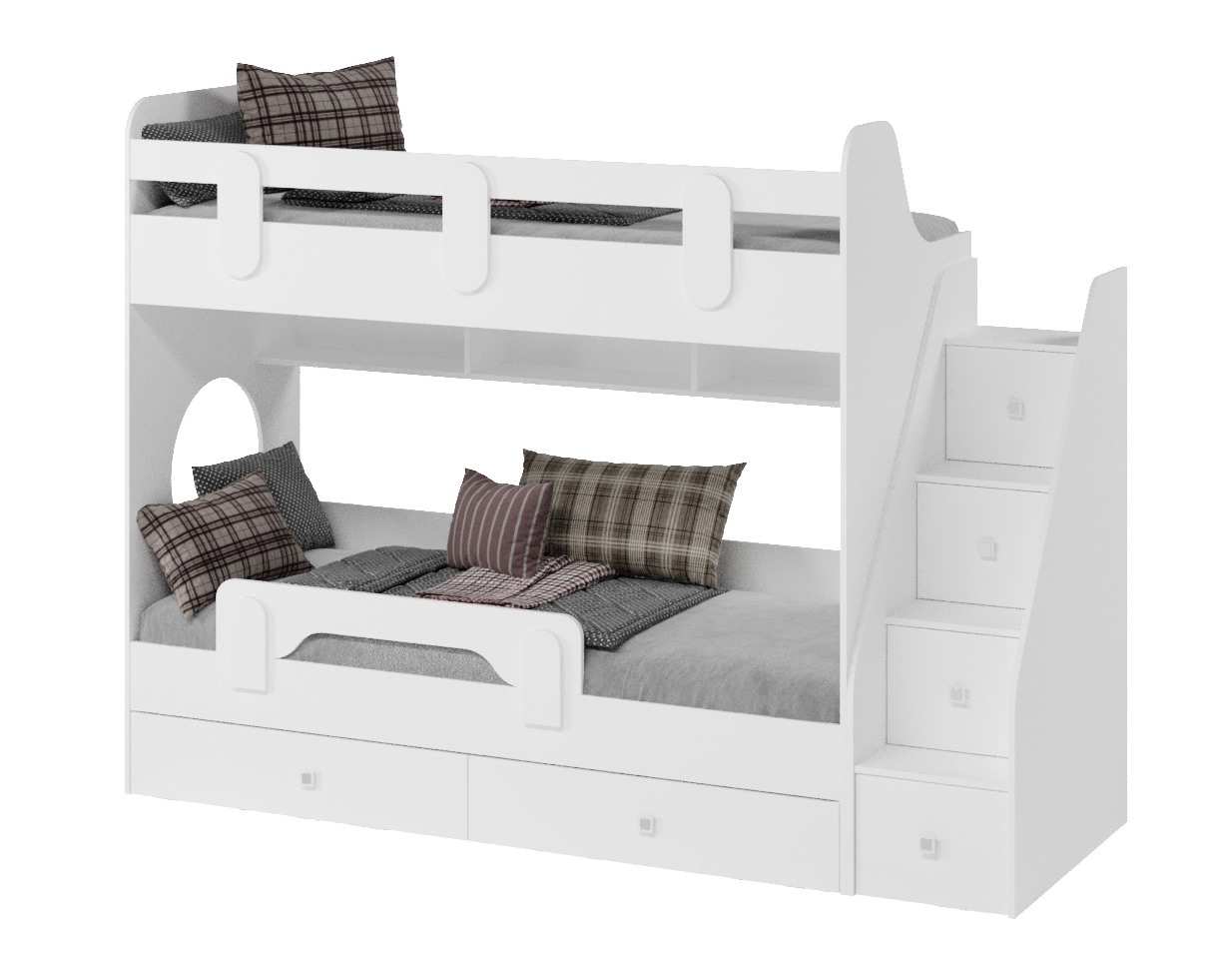 Двухъярусная кровать Фортуна-2 с удобной лестницей, высоким, безопасным бортиком и комфортной высотой.