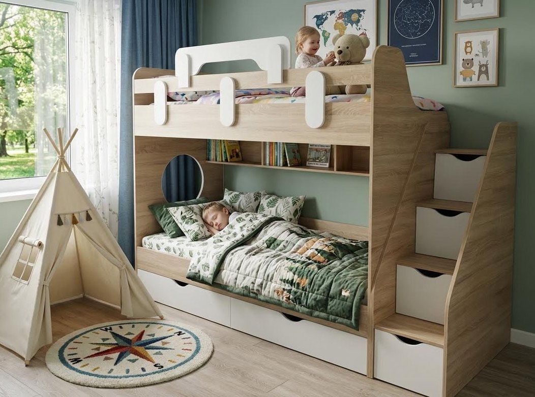 Уникальная двухъярусная кровать Фортуна предлагает не только стиль и безопасность, но и удобство на высоте!