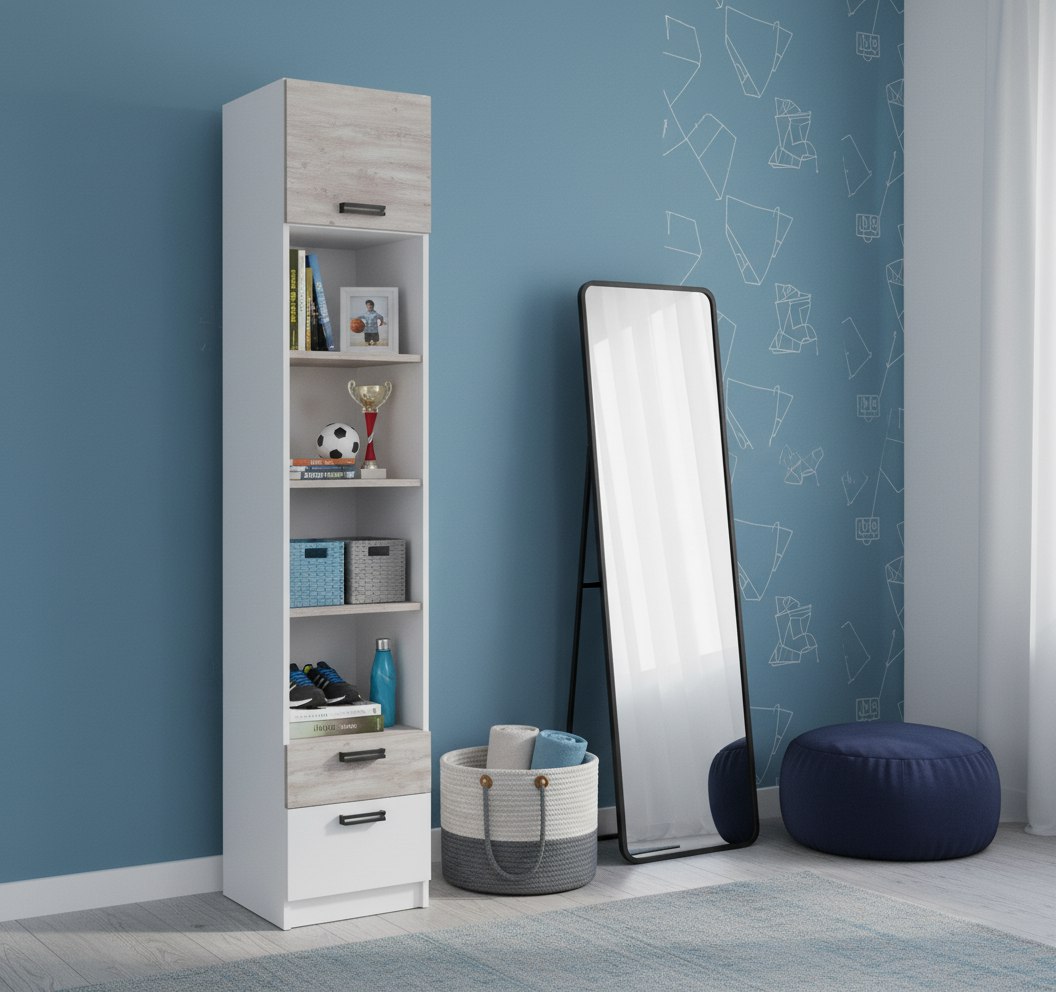 Мебель выполнена из сертифицированного, качественного, экологически чистого ЛДСП Е0,5 в сочетании цветов "бетон пайн" + белый