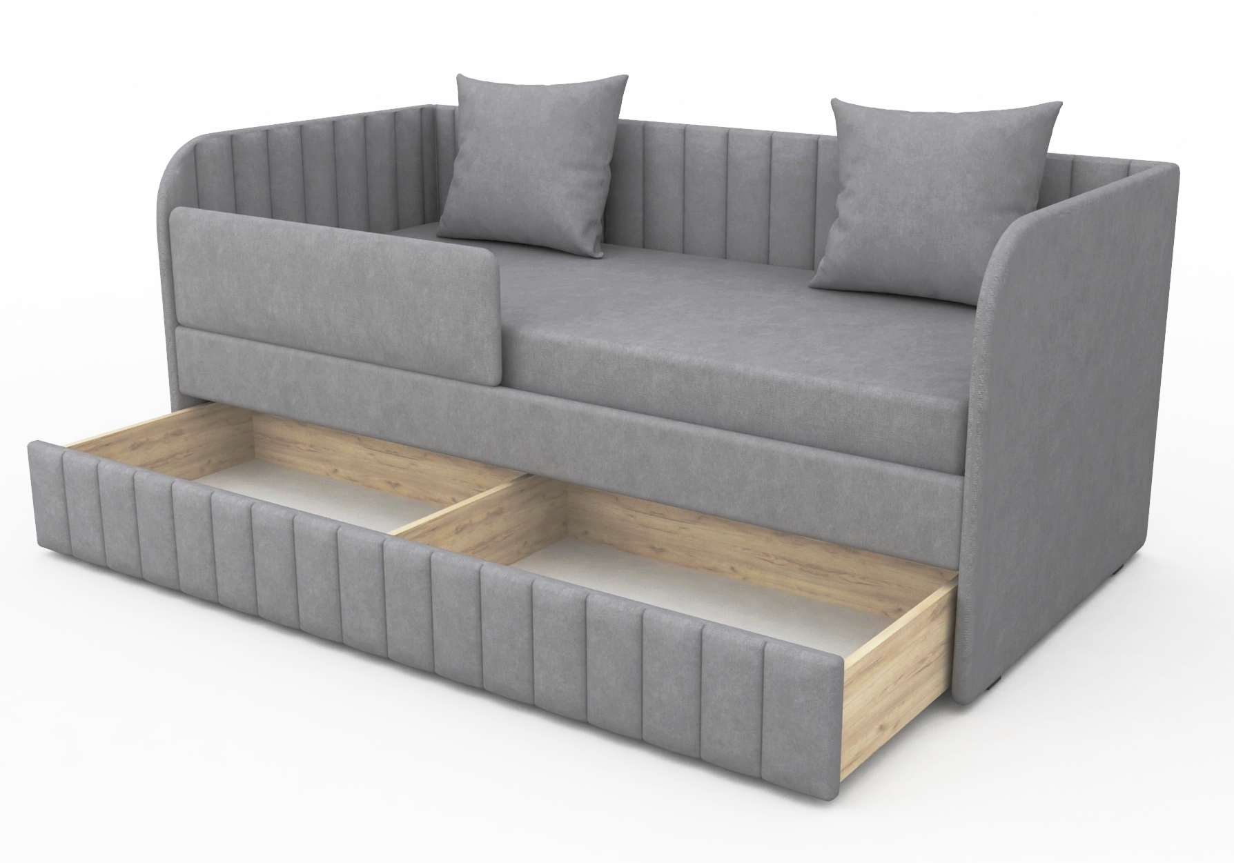 Кровать полностью безопасна для ребенка, так как имеет прочную конструкцию и мягкие подлокотники, которые защитят ребенка от травм.