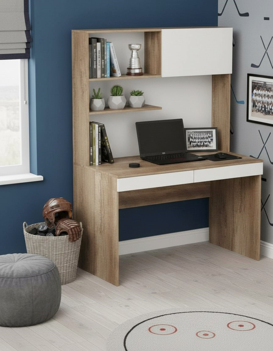 Мебель выполнена из сертифицированного, качественного, экологически чистого ЛДСП е0,5 в сочетании цветов "дуб каньон + белый".
