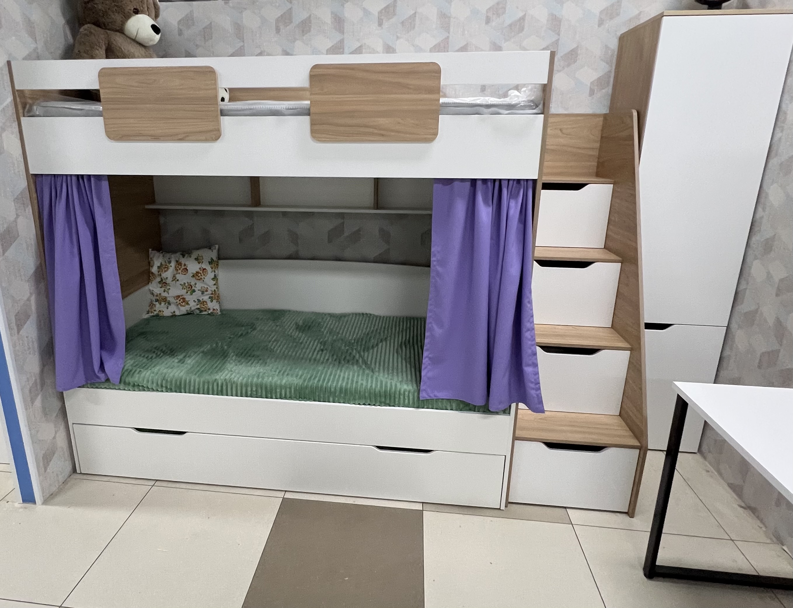 Высокая нагрузка на спальные места. Высокий, безопасный борт. Прочные ящики! |