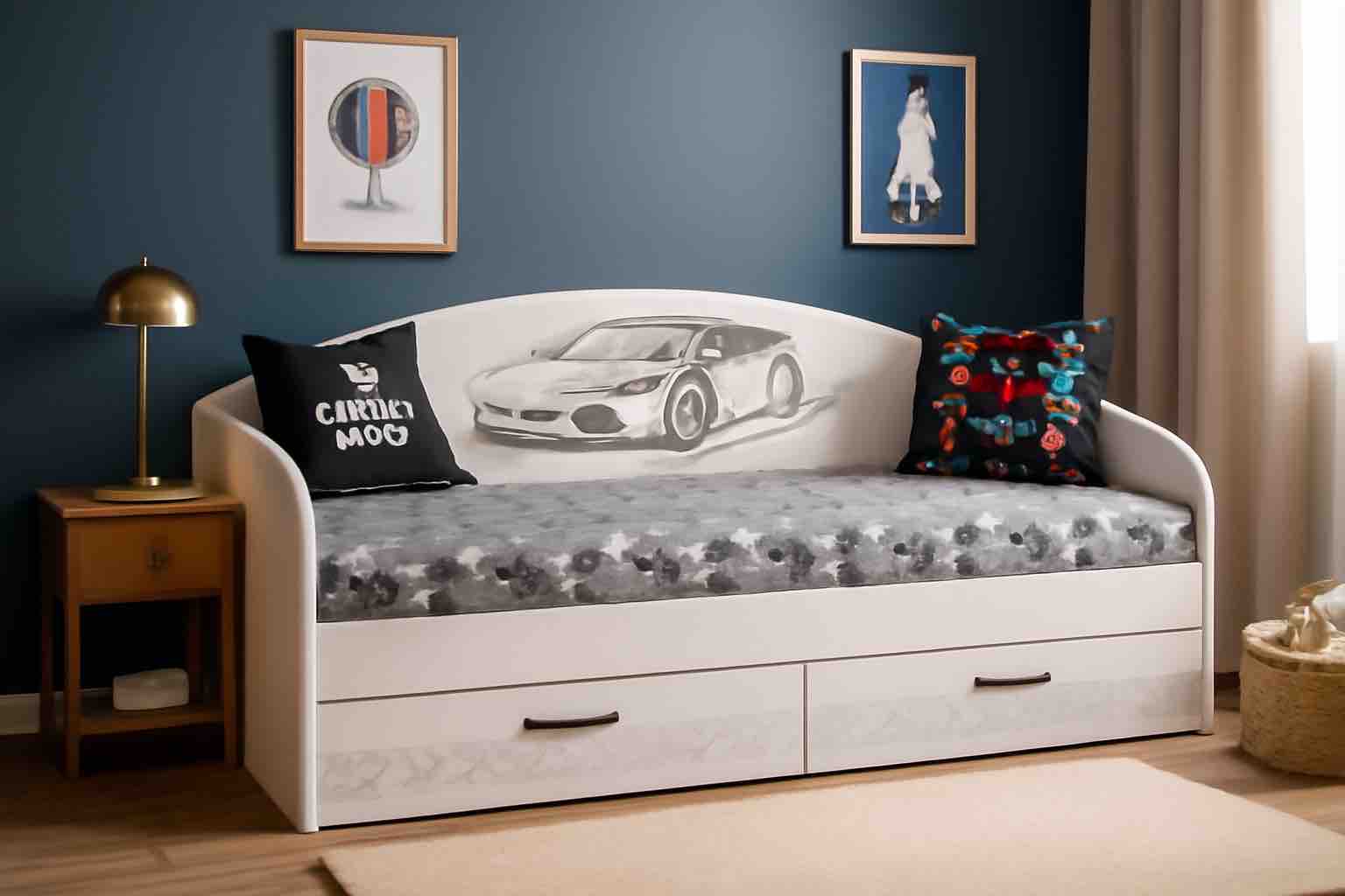 Кровать в современном и стильном дизайне превосходно дополнит интерьер детской комнаты.