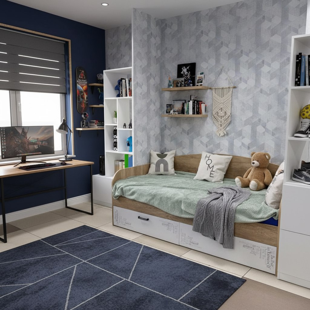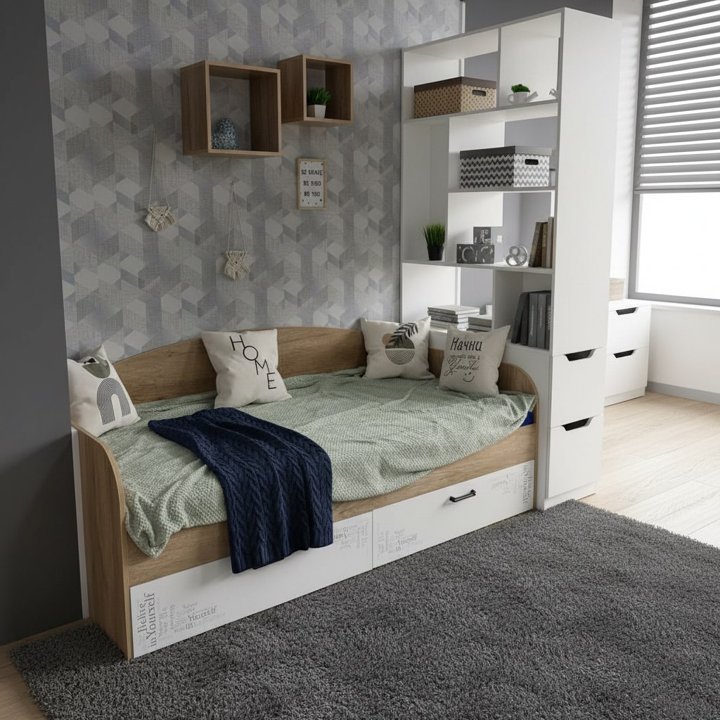 Данная модель кровати выполнена в современном дизайне, превосходно дополнит интерьер детской комнаты.