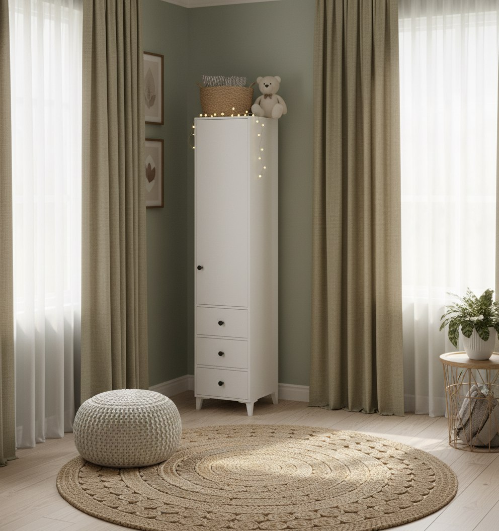 Мебель выполнена из сертифицированного, качественного, экологически чистого ЛДСП класса Е0,5 в белом цвете.