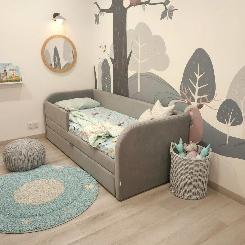 Кровать полностью безопасна для ребенка, так как имеет прочную конструкцию и мягкие подлокотники, которые защитят ребенка от травм.