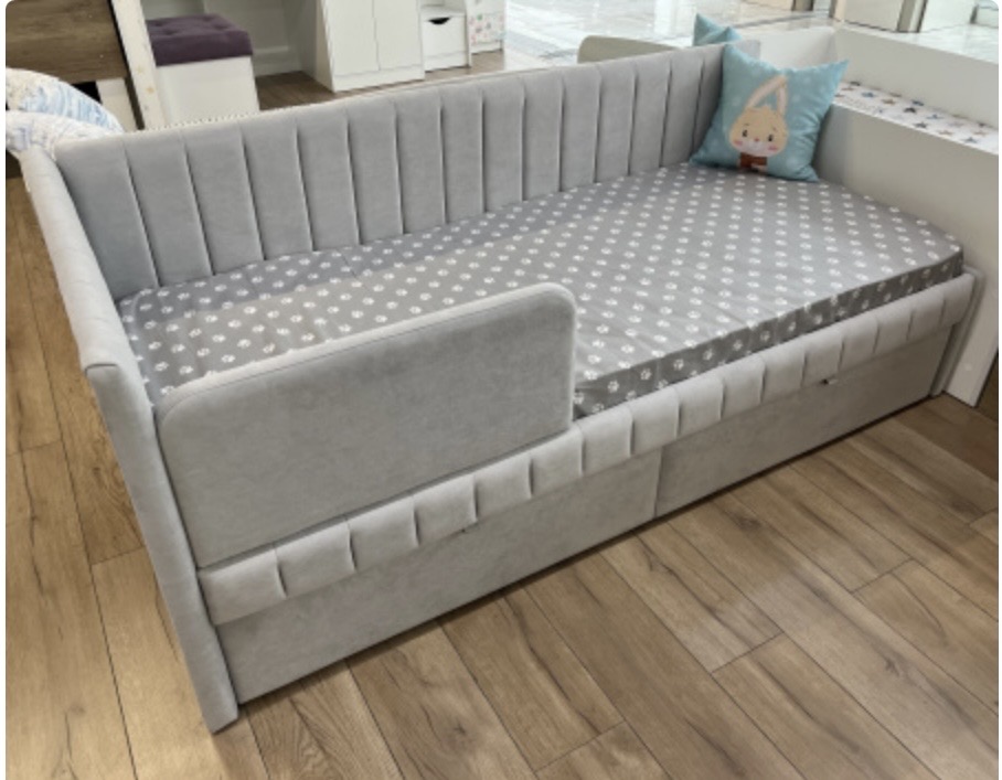 Кровать разработана с учетом требований к безопасности ребенка, сглаженные, мягкие углы, прочная конструкция и безопасные, гипоаллергенные материалы.