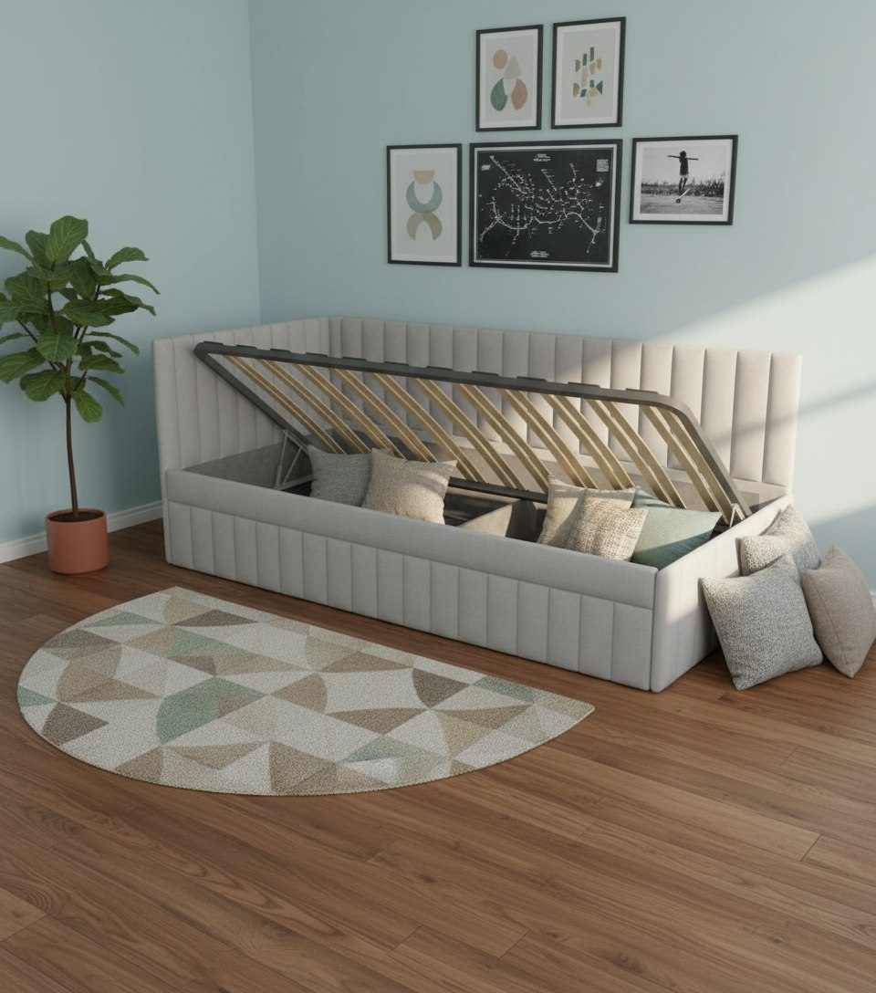 Компактная угловая кровать Софт станет отличным вариантом мебели для комнаты подростка.