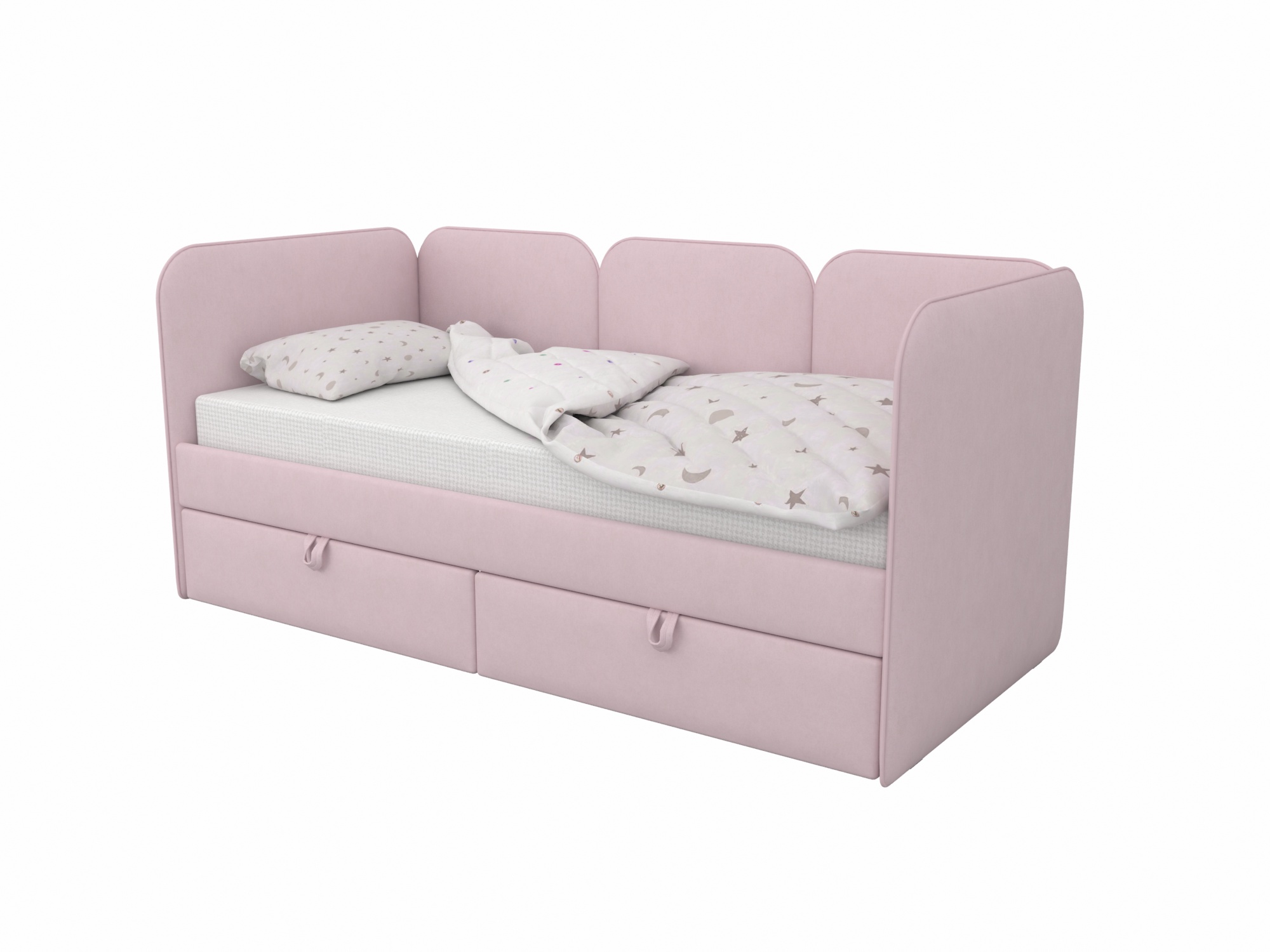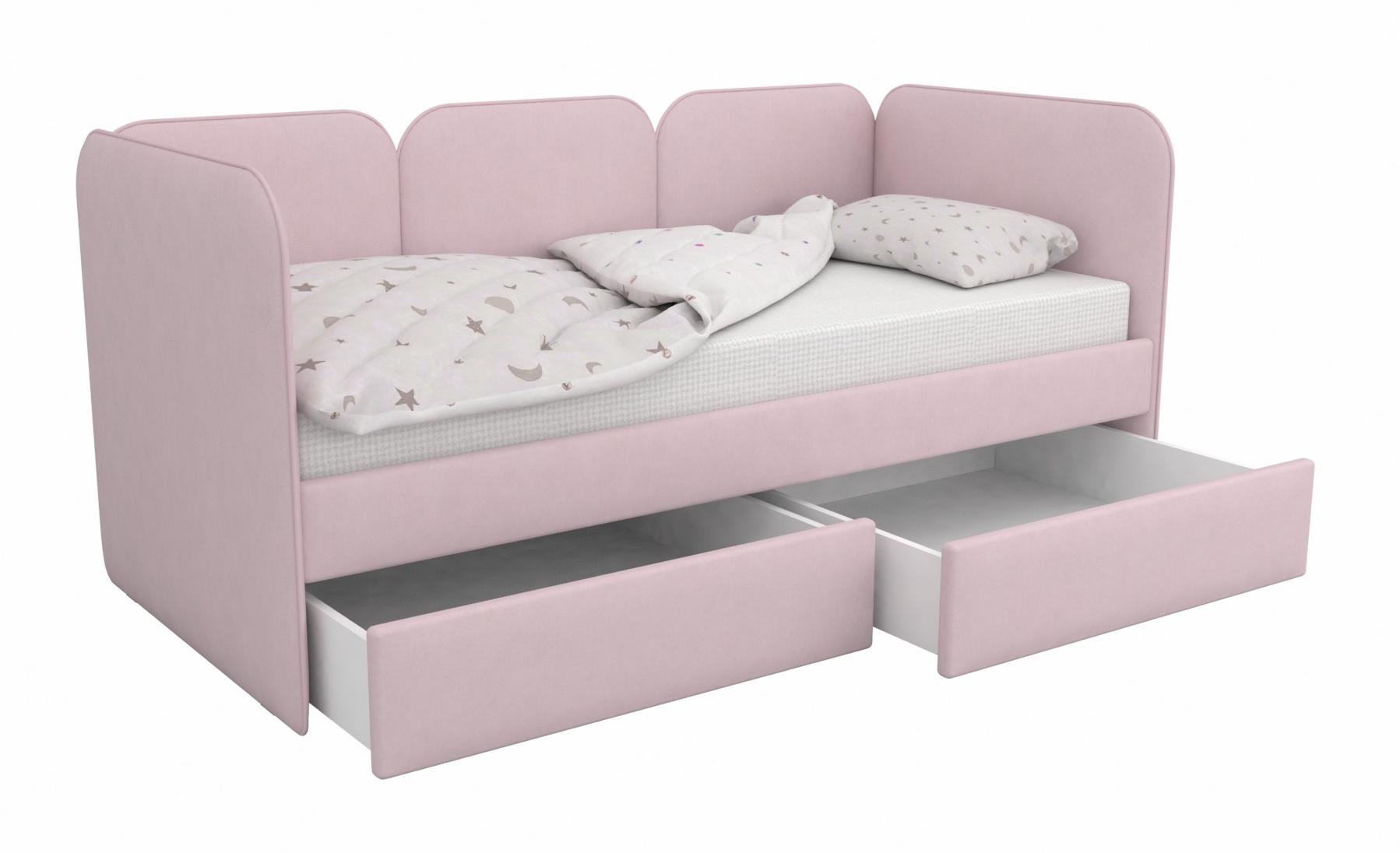 Мягкая кровать Соната с выразительными скругленными спинками - универсальная база для интерьеров детских комнат.