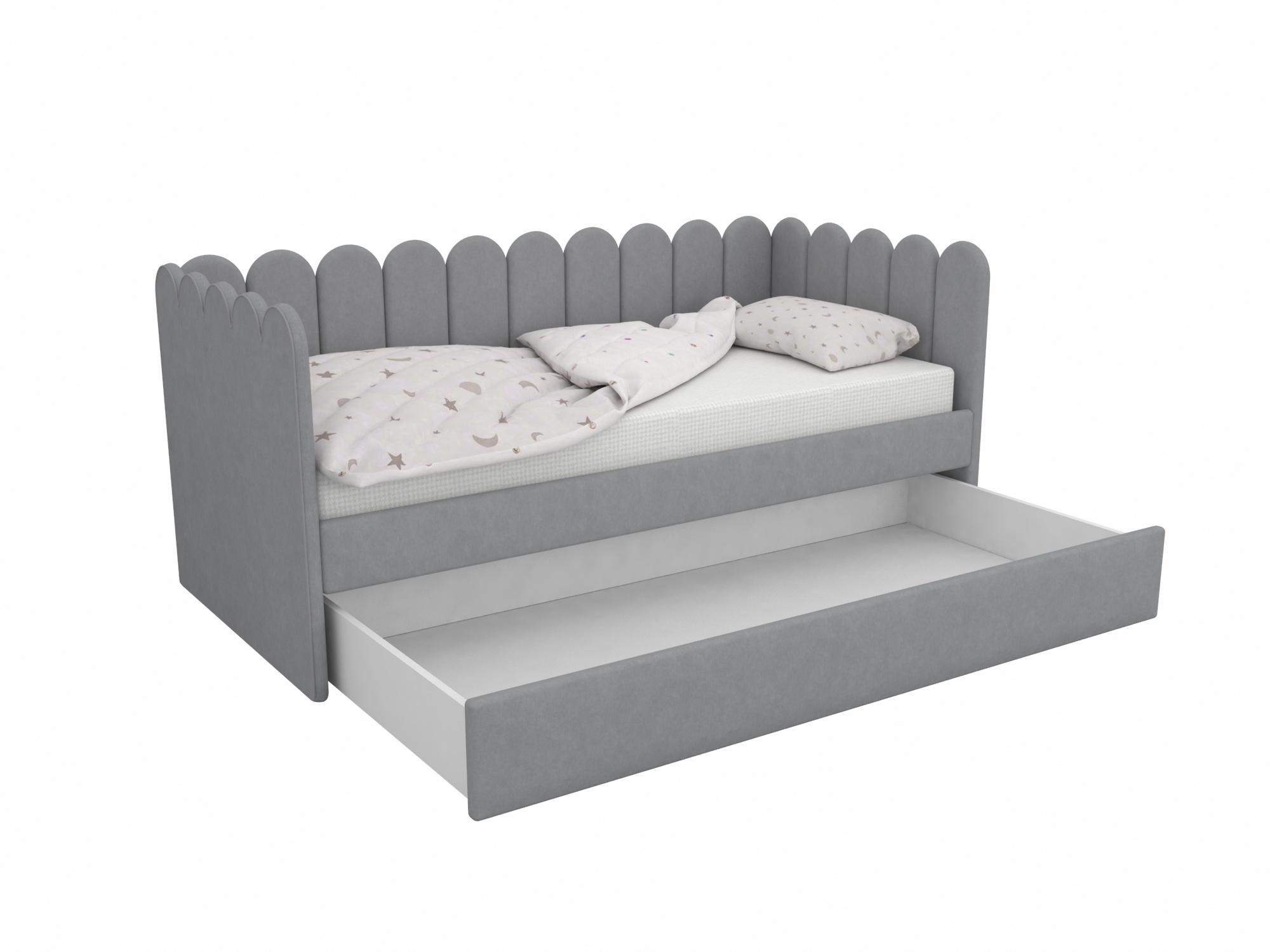 В комплект кровати входит выкатной ящик, который можно использовать как дополнительное спальное место или как ящик для хранения белья и игрушек.