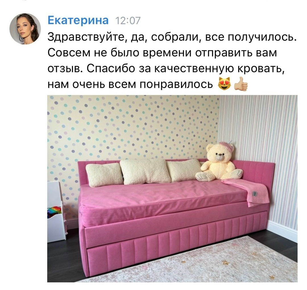Кровать полностью безопасна для ребенка, так как имеет прочную конструкцию и мягкие подлокотники, которые защитят ребенка от травм.