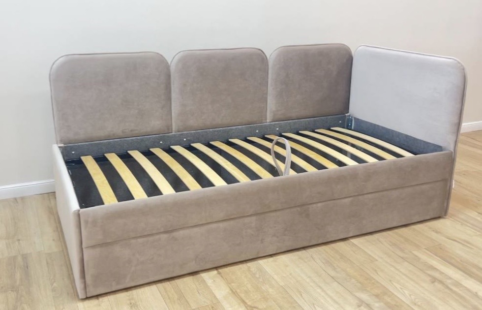 Широкий выбор расцветок ткани для обивки кровати и размеров спальных мест.