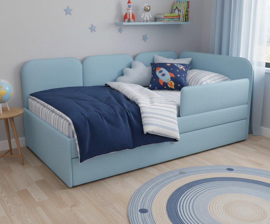 Мягкая угловая кровать Соната - универсальная модель для мальчика и девочки!
