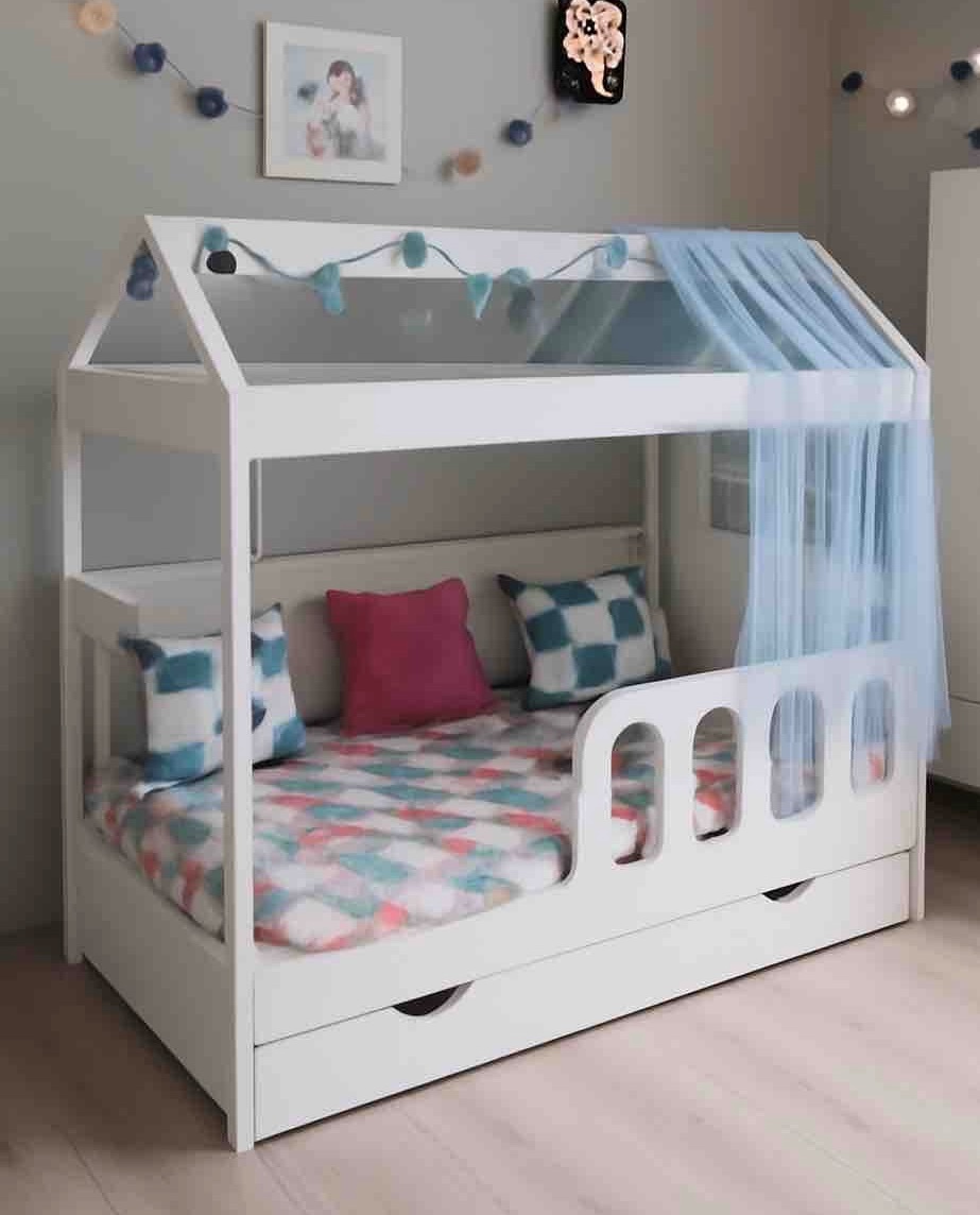 * Основание кровати – прочный настил ЛДСП (НЕ РЕЙКИ!), который позволяет ребенку спать на ровной поверхности, что важно для детской спины.