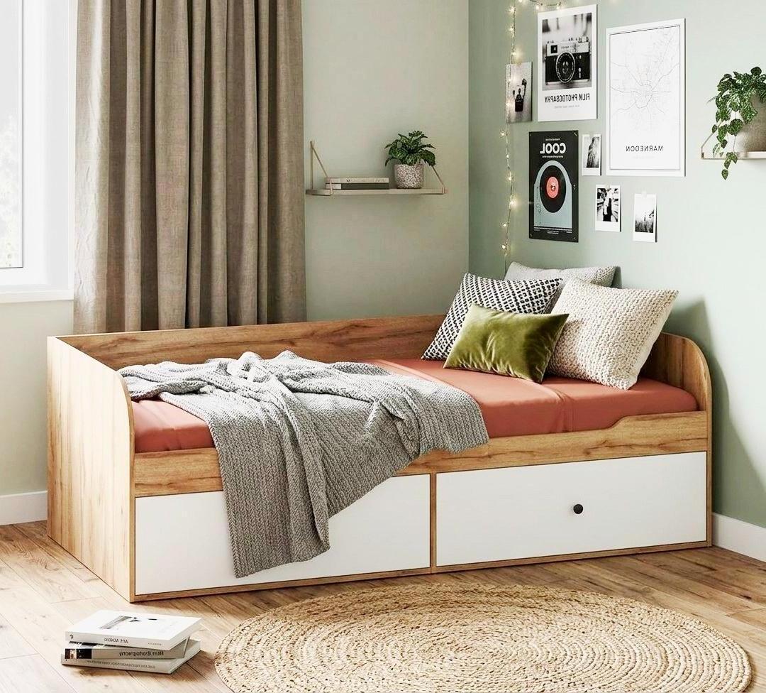 Кровать выполнена из сертифицированного, качественного, экологически чистого ЛДСП класса Е0,5 в сочетании цветов дуб золотистый с белым.