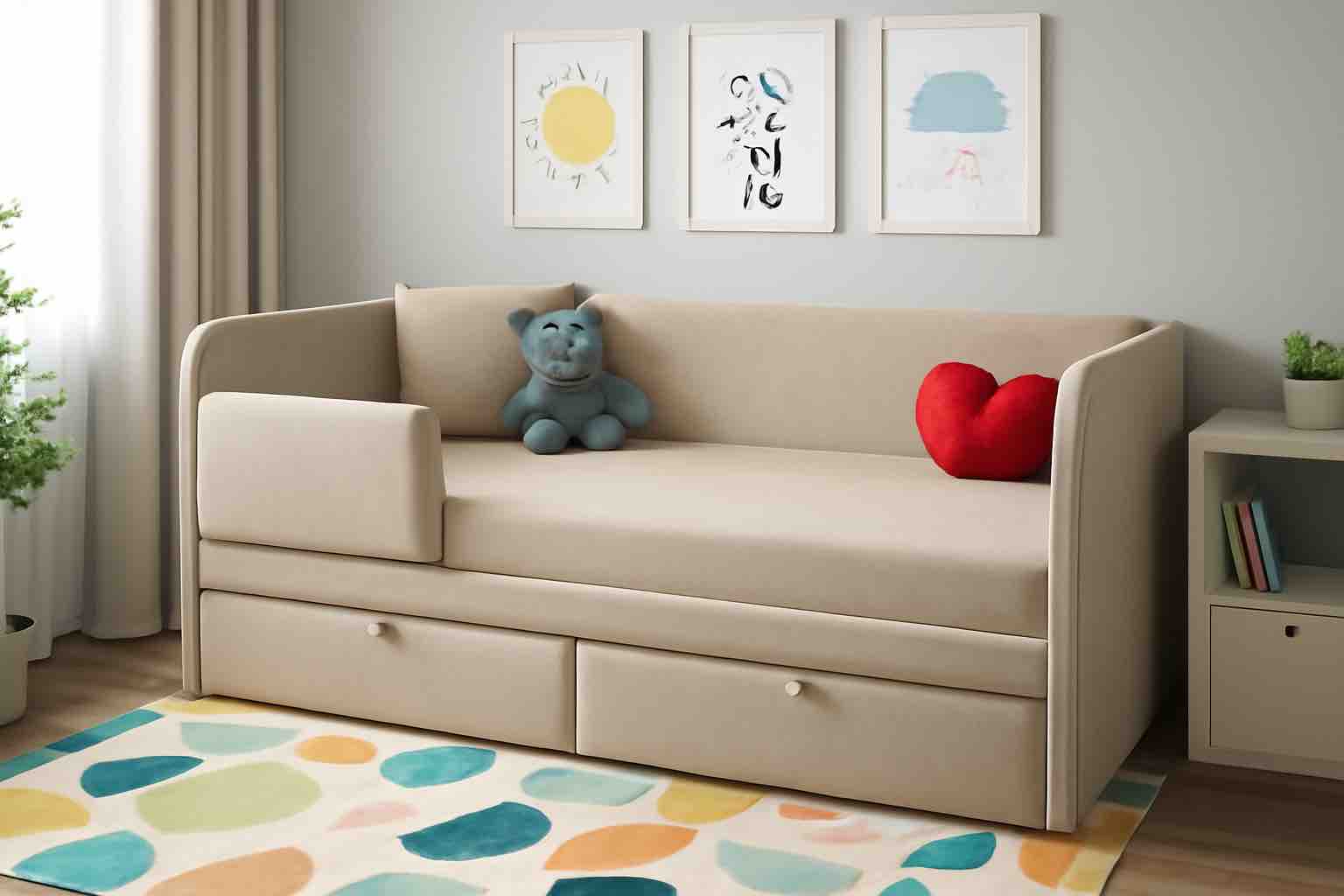 За счет высоких бортиков по периметру на диване будет безопасно спать даже малышам.