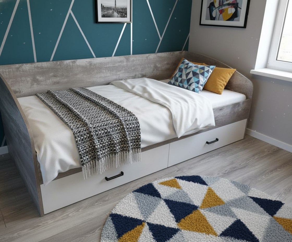 Высокая нагрузка на спальное место. Полновыкатные прочные ящики |