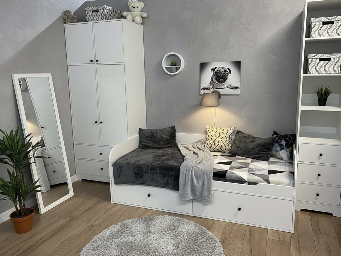 <comment>Здравствуйте! Вот такая детская у нас получилась. Порадовало качество мебели. Искала варианты, похожие на икею). В белом цвете и с черными ручками. Честно говоря, качество превзошло ожидания. Собирали сами, все очень понятно. Спасибо вашему магазину!</comment>