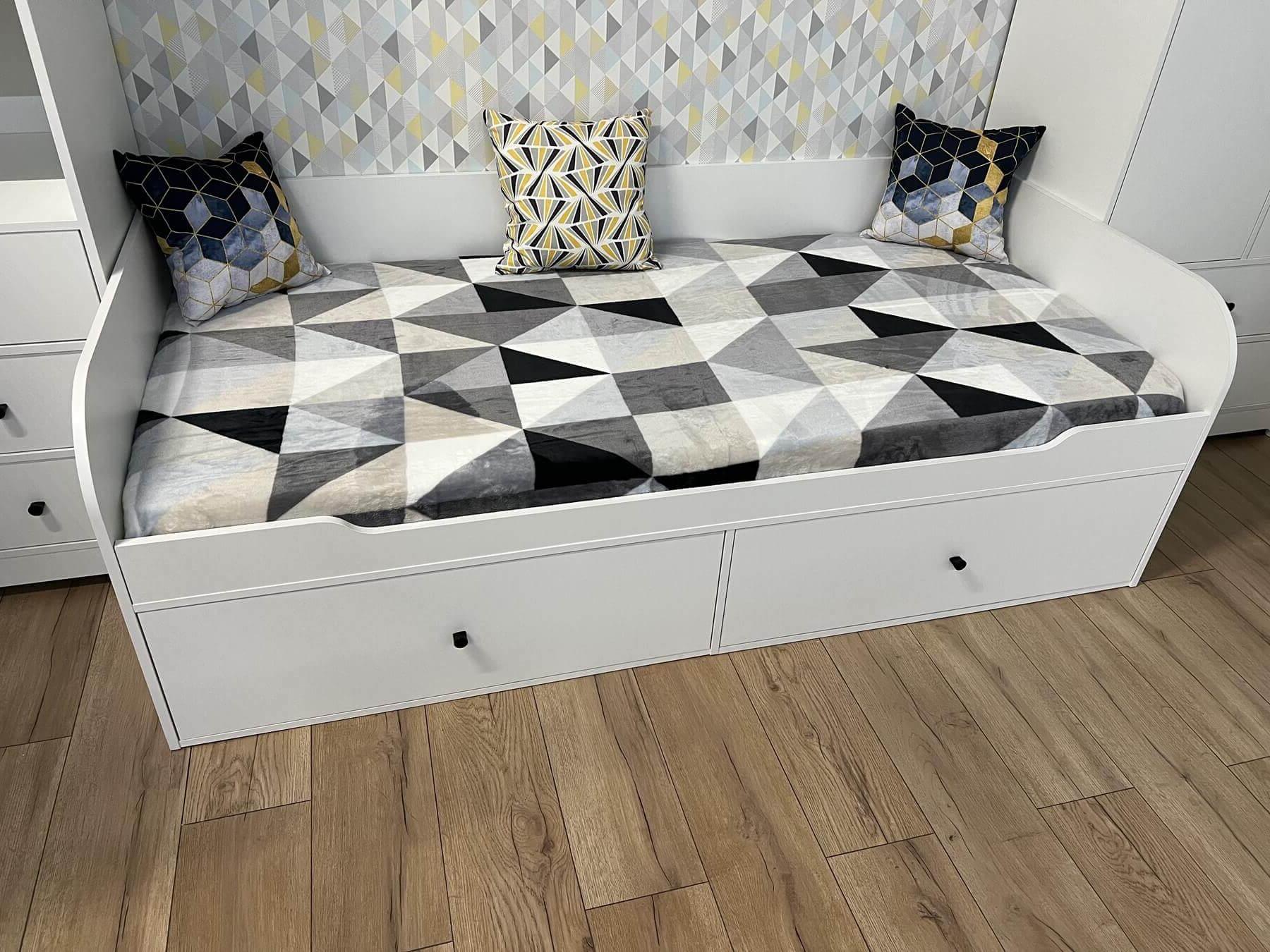 Высокая нагрузка на спальное место. Доводчики, направляющие скрытого монтажа. Прочные ящики - нагрузка до 45 кг на каждый ящик! |