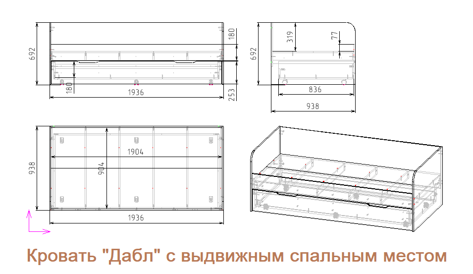 Представляем вам нашу популярную кровать "Дабл" с дополнительным выдвижным спальным местом.