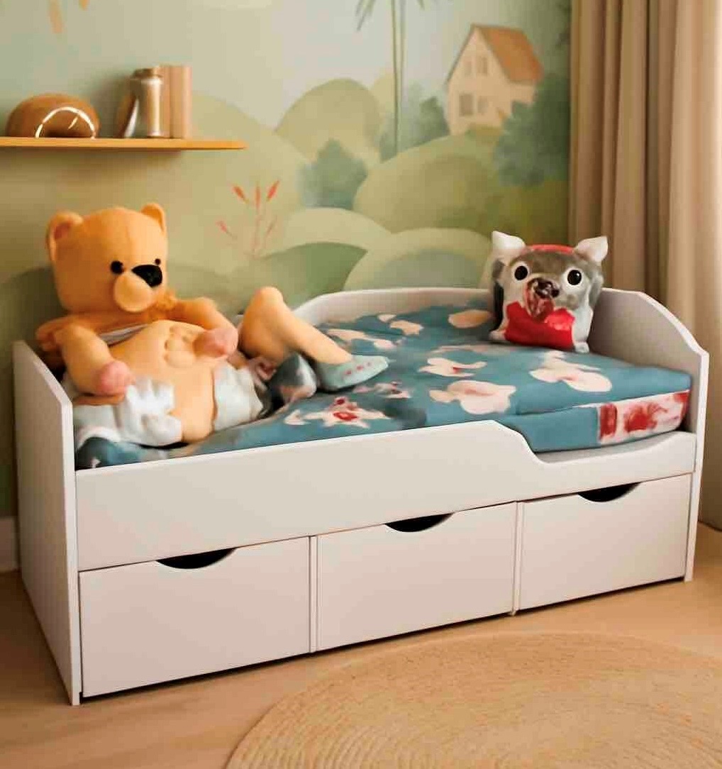 * Для дополнительной усиленной защиты для самых маленьких деток можно приобрести съемный бортик-ограничитель (устанавливается наверх основного бортика кровати).