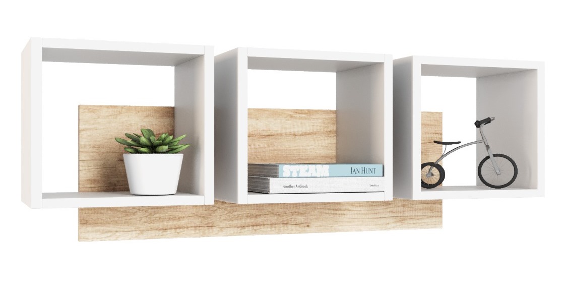 Полка выполнена из сертифицированного, качественного, экологически чистого ЛДСП 16 мм класса Е0,5 в сочетании цветов дуб каньон + белый.