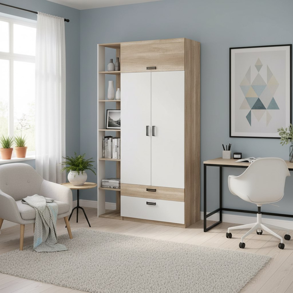 Мебель выполнена из качественного, экологически чистого ЛДСП класса Е0,5 в сочетании цветов дуб каньон + белый