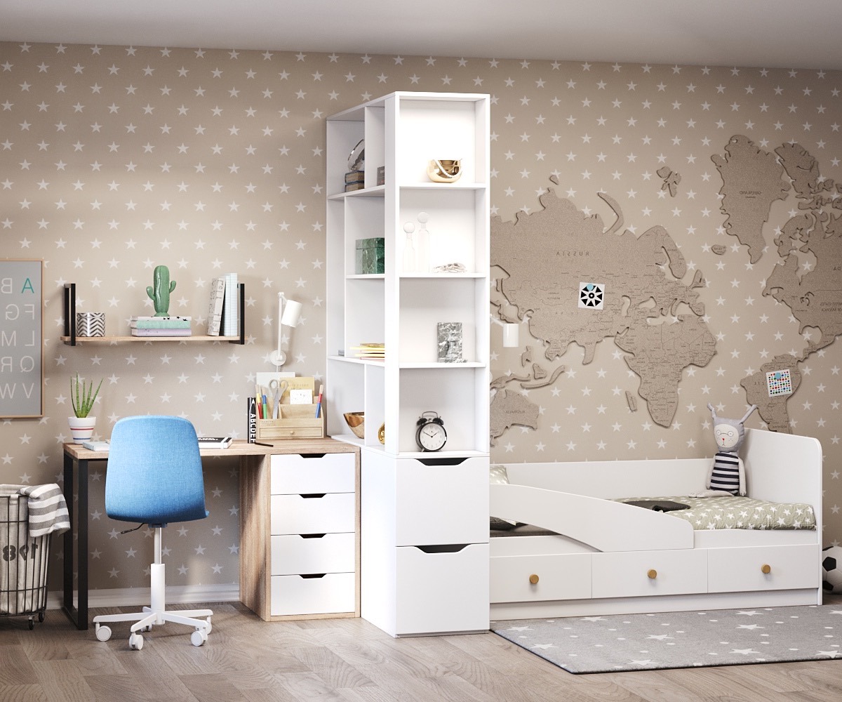Стеллаж-перегородка + стол Соло + кровать Умка