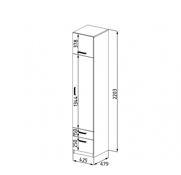 Габариты пенала: ширина 425 х высота 2203 х глубина 479 мм