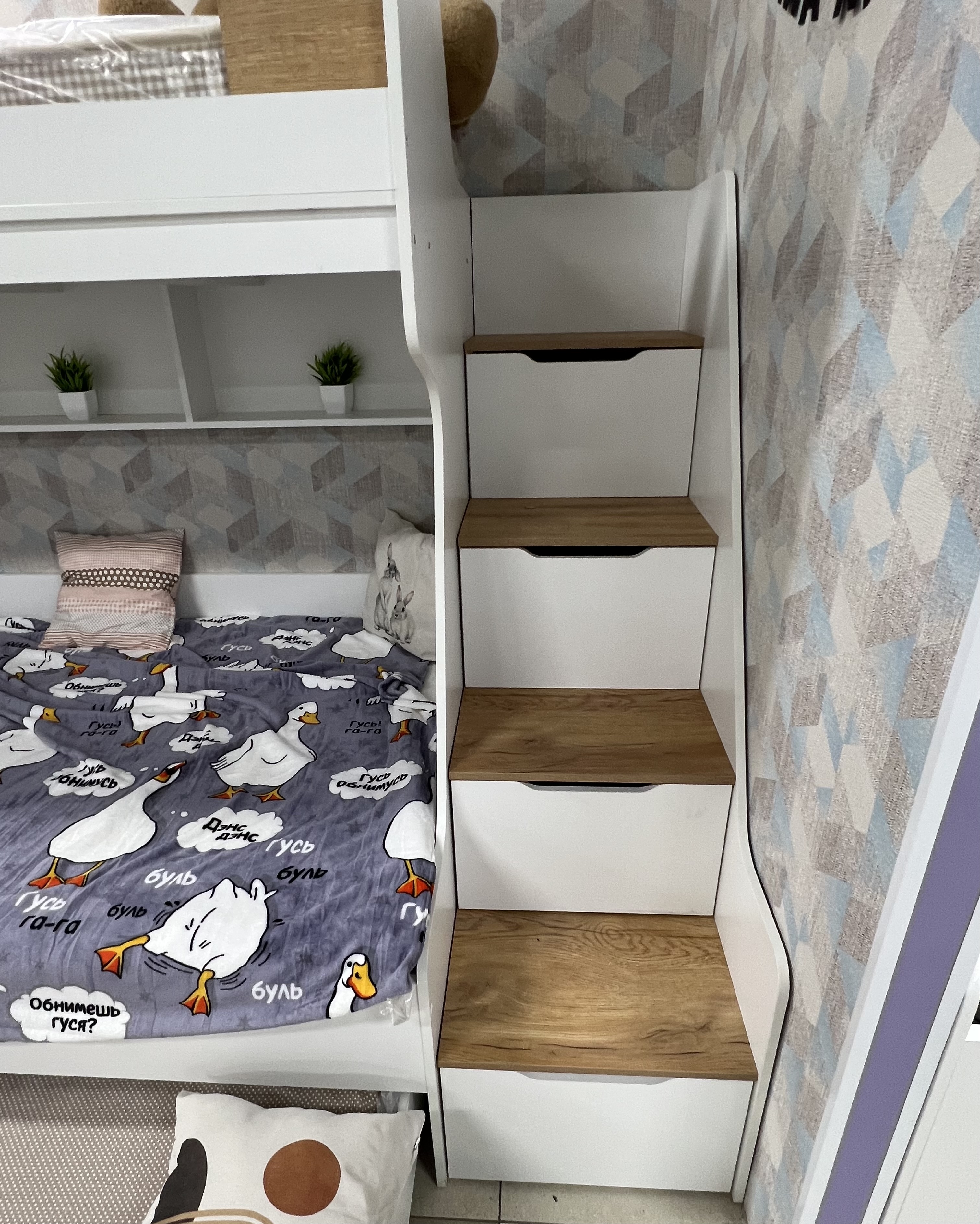 * В лестницу встроены ящики для игрушек.