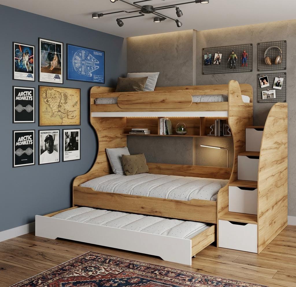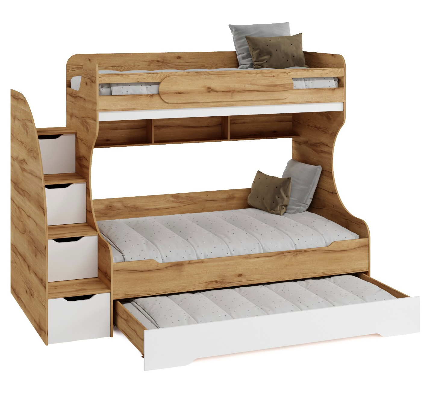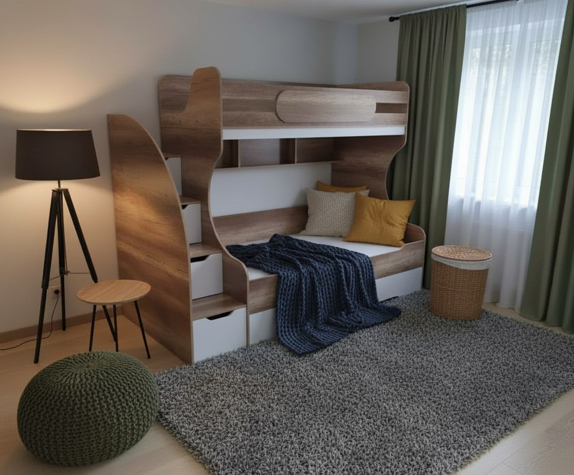 Вместо них - цельный и прочный настил из ЛДСП, который выдерживает сверхвысокую нагрузку и позволяет расположиться даже взрослому с ребенком.